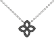 Originálny náhrdelník zdobí prívesok s čiernym briliantovým kvetom, ktorý sa bude na vašom krku luxusne trblietať. Jemná retiazka je vyrobená zo 14kt bieleho, žltého alebo ružového zlata.