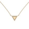 Geometrická trojuholníková línia zdobená diamantmi vsadenými do šperku zo 14-karátového zlata je trend, ktorý nikdy nevyjde z módy. Elegantný zlatý náhrdelník je luxusným doplnkom na každú príležitosť.