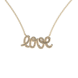 Efektný náhrdelník zo žltého zlata, ktorému dominuje trblietavý briliantový nápis love. Výrazný šperk, ktorý sa riadi horúcimi módnymi trendami, ktoré nosia aj svetové celebrity.