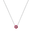 Decentný a luxusný náhrdelník v tvare kvetu je radosť nosiť. Zlatá retiazka v ružovom, bielom alebo žltom 14kt zlate s príveskom s briliantom a rubínmi v rôznych veľkostiach si doslova zamilujete. Šperk je jemný, no výrazný zároveň a hodí sa na všetky príležitosti.