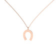 Pritiahnite si šťastie! Luxusný náhrdelník ALOve zo 14kt žltého, ružového a bieleho zlata s diamantovým príveskom v tvare podkovy je k tomu priam stvorený.