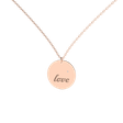 Minimalistický náhrdelník z kolekcie ALOve Touch of Gold z bieleho, žltého alebo ružového zlata s jemnou retiazkovou siluetou, ktorej dominuje okrúhly prívesok s nápisom Love a trblietavým diamantom.