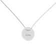 Originálne riešený módny náhrdelník zo 14kt bieleho, žltého alebo ružového zlata s efektne zaveseným kruhovým príveskom s čistými líniami, ktorý necháva vyniknúť nápis Love.