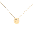 Luxusný náhrdelník zo 14kt zlata inšpirovaný horúcimi svetovými módnymi trendmi tvorený jemnou retiazkou a kruhovým príveskom s nápisom Love a diamantom.