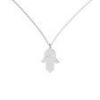 Minimalistický náhrdelník ALOve zo 14kt bieleho, žltého alebo ružového zlata, ktorému dominuje symbolický prívesok ruky (,,hamsa ", ,,Ruka Fatimy") s diamantom. Luxusný šperk a ochranný talizman.
