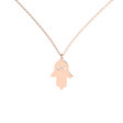 Minimalistický náhrdelník ALOve zo 14kt bieleho, žltého alebo ružového zlata, ktorému dominuje symbolický prívesok ruky (,,hamsa ", ,,Ruka Fatimy") s diamantom. Luxusný šperk a ochranný talizman.