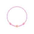 Skvelým tipom na darček je detský náramok s farebnou šnúrkou. Náramok je zdobený 14kt zlatou platničkou v bielej, ružovej alebo žltej farbe s písmenom a drobný diamant dodáva náramku krásny lesk.