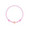 Skvelým tipom na darček je detský náramok s farebnou šnúrkou. Náramok je zdobený 14kt zlatou platničkou v bielej, ružovej alebo žltej farbe s písmenom a drobný diamant dodáva náramku krásny lesk.