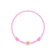 Skvelým tipom na darček je detský náramok s farebnou šnúrkou. Náramok je zdobený 14kt zlatou platničkou v bielej, ružovej alebo žltej farbe s písmenom a drobný diamant dodáva náramku krásny lesk.