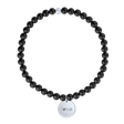 Náramok s achátovými guličkami a kruhovým príveskom zo 14-karátového bieleho zlata s nápisom ,,l♡ve" a briliantom. Priemer guličky: 4 mm.