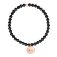 Náramok s achátovými guličkami a kruhovým príveskom zo 14-karátového ružového zlata s nápisom ,,l♡ve" a briliantom. Priemer guličky: 4 mm.