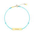 Decentný náramok ALOve s farebnou šnúrkou a zlatú doštičkou s láskyplným nápisom Love a diamantom je štýlovým doplnkom, ktorý už nebudete chcieť zložiť.