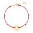 Minimalistický náramok z kolekcie ALOve Touch of Gold s farebnou šnúrkou a okrúhlym príveskom z bieleho, žltého alebo ružového zlata s nápisom Love a diamantom. Štýlový šperk pre každodenné nosenie.