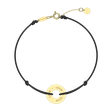 Minimalistický náramok z kolekcie ALOve Touch of Gold s farebnou šnúrkou a okrúhlym príveskom z bieleho, žltého alebo ružového zlata s nápisom Love a diamantom. Štýlový šperk pre každodenné nosenie.