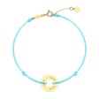 Minimalistický náramok z kolekcie ALOve Touch of Gold s farebnou šnúrkou a okrúhlym príveskom z bieleho, žltého alebo ružového zlata s nápisom Love a diamantom. Štýlový šperk pre každodenné nosenie.
