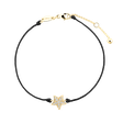 Elegantný náramok ALOve v trendy kombinácii farebnej šnúrky a prívesku z bieleho, žltého alebo ružového zlata v tvare hviezdy, ktorej ešte väčší lesk dodávajú efektne brúsené diamanty.