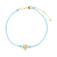 Elegantný náramok ALOve v trendy kombinácii farebnej šnúrky a prívesku z bieleho, žltého alebo ružového zlata v tvare hviezdy, ktorej ešte väčší lesk dodávajú efektne brúsené diamanty.