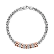 S týmto prsteňom v 18kt bielom a ružovom zlate a diamantoch budete vždy vyzerať sebaisto. Jeho ohromujúce tvary a farby zdôraznia vašu sofistikovanosť a chuť. Najjemnejšie diamanty na tomto náramku vytvárajú trblietavé ľahké hry, ktoré zaujmú každého obdivovateľa. Šperk je súčasťou kolekcie Essential.