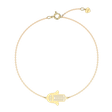 Originálne riešený zlatý náramok ALOve s jemnou retiazkovou siluetou, ktorá je prepojená rukou s jasne definovanými kontúrami zahalenými do iskrivého ligotu diamantu najvyššej kvality.