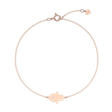 Nadčasový zlatý náramok ALOve v originálnom a veľmi módnom dizajne. Šperk tvorený retiazkou s jemnou siluetou, ktorú prepája symbol ruky pre väčší efekt zdobený žiariacim diamantom.