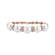 Krásny 18kt náramok z ružového zlata s diamantmi a sladkovodnou bielou perlou je umeleckým dielom. Tento šperk bol navrhnutý tak, aby zabezpečil obdiv a úžas pre svojho nositeľa. Biela perla dodáva diamantovým šperkom tajomnosť a mystiku, ktorá očarí každého. Šperk je súčasťou kolekcie Ocean & River.