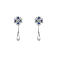 Tieto jemné náušnice z 18kt bieleho zlata s diamantmi a zafírom sú stelesnením nehy a elegancie - nádherným doplnkom, ktorý dodá vášmu outfitu nádych luxusu a sofistikovanosti. Šperk je súčasťou kolekcie Flowers.