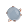 Tento prsteň z ružového zlata 14kt kombinuje jemnosť a eleganciu s diamantmi a akvamarínom. Jeho jemný dizajn je dokonalým doplnkom pre každú dôležitú príležitosť, dodáva šmrnc a zároveň zdôrazňuje jemnú krásu nositeľa. Šperk je súčasťou kolekcie Blossoms.