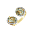 Tento prsteň vyrobený z 18kt žltého a bieleho zlata, ktorý kombinuje diamanty s krásnou ametystovou zelenou, je svedectvom hlbokých pocitov a jedinečného štýlu, ktorý vás nikdy nesklame. Jeho nadčasový dizajn a luxusná krása z neho robia nielen elegantný šperk, ale aj verného spoločníka na ceste vaším životom. Šperk je súčasťou kolekcie Fantasy.