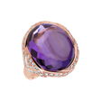 Tento prsteň, majstrovsky vyrobený z lesklého 18kt ružového zlata, je symbolom sofistikovanosti a nekonečnej elegancie. Jeho diamanty a ametyst brazílsky, trblietavé ako kvapky rosy, vyžarujú luxus a výnimočnosť. Zlatý šperk je dokonalým doplnkom každého úspechu. Šperk je súčasťou kolekcie Blossoms.