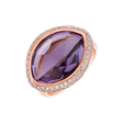 18kt prsteň z ružového zlata s diamantmi a brazílskym ametystom je ako poklad strateného kráľovstva. Jeho trblietavé diamanty a vzácny ametyst brazília symbolizujú luxus, silu a lákavú krásu. Šperk je súčasťou kolekcie Blossoms.