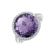 Elegantný prsteň z 18kt bieleho zlata, zdobený diamantmi a ametystom brazília - pre tých, ktorí si chcú dopriať skutočný šperk plný majestátnosti. Šperk je súčasťou kolekcie Fantasy.