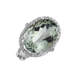 Tento prsteň z 18kt bieleho zlata s diamantmi a ametystovou zelenou je ako večný prísľub šťastia. Jeho jemný dizajn a trblietky diamantov sú ako iskry na oblohe, ktoré svietia len pre vás. Vaša šťastná hviezda, ktorá zostane navždy. Šperk je súčasťou kolekcie Fantasy.