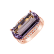 Tento prsteň z ružového zlata 18kt s diamantmi a ametystovou ružovou je ako večný sľub šťastia. Jeho jemný dizajn a trblietky diamantov sú ako iskry na oblohe, ktoré svietia len pre vás. Vaša šťastná hviezda, ktorá zostane navždy. Šperk je súčasťou kolekcie Fantasy.