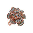 Tento výnimočný prsteň vyrobený z 18kt ružového a bieleho zlata je zdobený krásnymi hnedými diamantmi, ktoré mu dodávajú jedinečný nádych. Jeho dizajn je elegantný a vkusný, čo z neho robí dokonalý doplnok na špeciálne príležitosti. Šperk je súčasťou kolekcie Flowers.