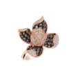 Objavte spojenie teplého lesku 18kt ružového a čierneho zlata a oslnivých hnedých diamantov, ktoré tvoria symfóniu svetla a elegancie v tomto luxusnom prsteni. Rozmaznávajte svoj zmysel pre krásu s touto jemnou poctou úspechu a sofistikovanosti. Šperk je súčasťou kolekcie Flowers.