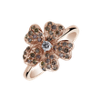 Elegantný prsteň s 18kt ružou a bielym zlatom zdobený hnedými diamantmi. Perfektný doplnok pre každú príležitosť na úspech. Šperk je súčasťou kolekcie Flowers.