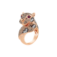 18kt prsteň z ružového zlata s čiernymi a hnedými diamantmi a rubínom je ako poklad strateného kráľovstva. Jeho trblietavé diamanty a drahý rubín sú ako najcennejšie šperky symbolizujúce luxus, silu a lákavú krásu. Šperk je súčasťou kolekcie Animals.