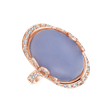 Exkluzívny prsteň zo 14kt ružového zlata zdobený diamantmi a modrým chalcedónom je majstrovským dielom šperkárskeho umenia. Jeho jedinečný dizajn a mimoriadna krása modrého chalcedónu odhaľujú skutočnú eleganciu. Šperk je súčasťou kolekcie Blossoms.