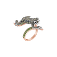 Prsteň s čiernymi a bielymi diamantmi a granátmi Luxury Frog