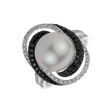 Prsteň s čiernymi a bielymi diamantmi a perlou Vortex of Emotions