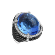 18kt prsteň z bieleho a čierneho zlata s čiernymi diamantmi a topásom swiss, ktorý je majstrovským dielom remeselného spracovania. Tento šperk je symbolom toho, že nekonečné možnosti sú na dosah tých, ktorí sa odvážia snívať vo veľkom. Šperk je súčasťou kolekcie Fantasy.