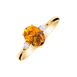 Klasický design zásnubního prstenu v moderním provedení. Oválný centrální citrín je po stranách zdoben dvěma menšími diamanty, což vypadá opravdu úchvatně.