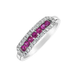 Krásny prsteň vyrobený zo 14kt bieleho zlata zdobený diamantmi a ušľachtilým rubínom. Tento šperk je majstrovské dielo, ktoré bolo vytvorené tak, aby nechalo ľudí okolo vás bez dychu. Ruby dodáva prsteňu krásu a vášeň, ktorá očarí každého. Šperk je súčasťou kolekcie Charming.