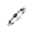 Elegantný prsteň z 18kt bieleho zlata zdobený oslnivými diamantmi a krásnym rubínom. Tento prsteň je symbolom luxusu a elegancie, ktorý vám prinesie nespočetné množstvo momentov obdivu od ostatných. Vďaka svojmu jedinečnému dizajnu a kvalite sa stanete stredobodom pozornosti na každej spoločenskej udalosti. Šperk je súčasťou kolekcie Creoles.