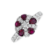 Doprajte si luxus, ktorý je stelesnený v tomto prsteni vyrobenom z 18kt bieleho zlata s diamantmi a rubínom. Každý detail tohto šperku bol starostlivo navrhnutý a vytvorený tak, aby vám poskytol jedinečný pocit elegancie a krásy. Šperk je súčasťou kolekcie Flowers.