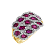 Tento prsteň, majstrovsky vyrobený z lesklého 18kt bieleho a žltého zlata, je symbolom sofistikovanosti a nekonečnej elegancie. Jeho diamanty a rubín, trblietavé ako kvapky rosy, vyžarujú luxus a výnimočnosť. Zlatý šperk je dokonalým doplnkom každého úspechu. Šperk je súčasťou kolekcie Charming.