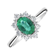 Oválny smaragd obklopený iskrivými briliantmi na jemnej zlatej obrúčke vyzerá doslova kráľovsky. Prsteň, s ktorým sa vaša vyvolená bude cítiť ako princezná!