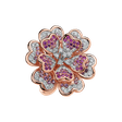 Tento 18kt prsteň z ružového a bieleho zlata, zakončený diamantmi a ružovým zafírom, je poctou triumfu a elegancie. Každý kameň žiari ako symbol úspechu, prestíže a výnimočnosti. Vyrobené pre ženu, ktorá si zaslúži to najlepšie. Šperk je súčasťou kolekcie Flowers.