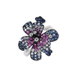 Elegantný prsteň vyrobený z 18kt bieleho zlata s diamantmi, zafírom a zafírovou ružovou, ktorý vyžaruje jedinečnú noblesu a rafinovanú chuť. Tento prsteň je dokonalou zmesou elegancie a jemného lesku, ktorý z neho robí výrazný doplnok na každú príležitosť. Šperk je súčasťou kolekcie Flowers.