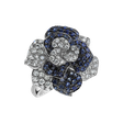 Tento prsteň z bieleho a čierneho zlata, pokrytý diamantmi a zafírom, je poctou triumfu a elegancie. Každý kameň žiari ako symbol úspechu, prestíže a výnimočnosti. Vyrobené pre ženu, ktorá si zaslúži to najlepšie. Šperk je súčasťou kolekcie Flowers.
